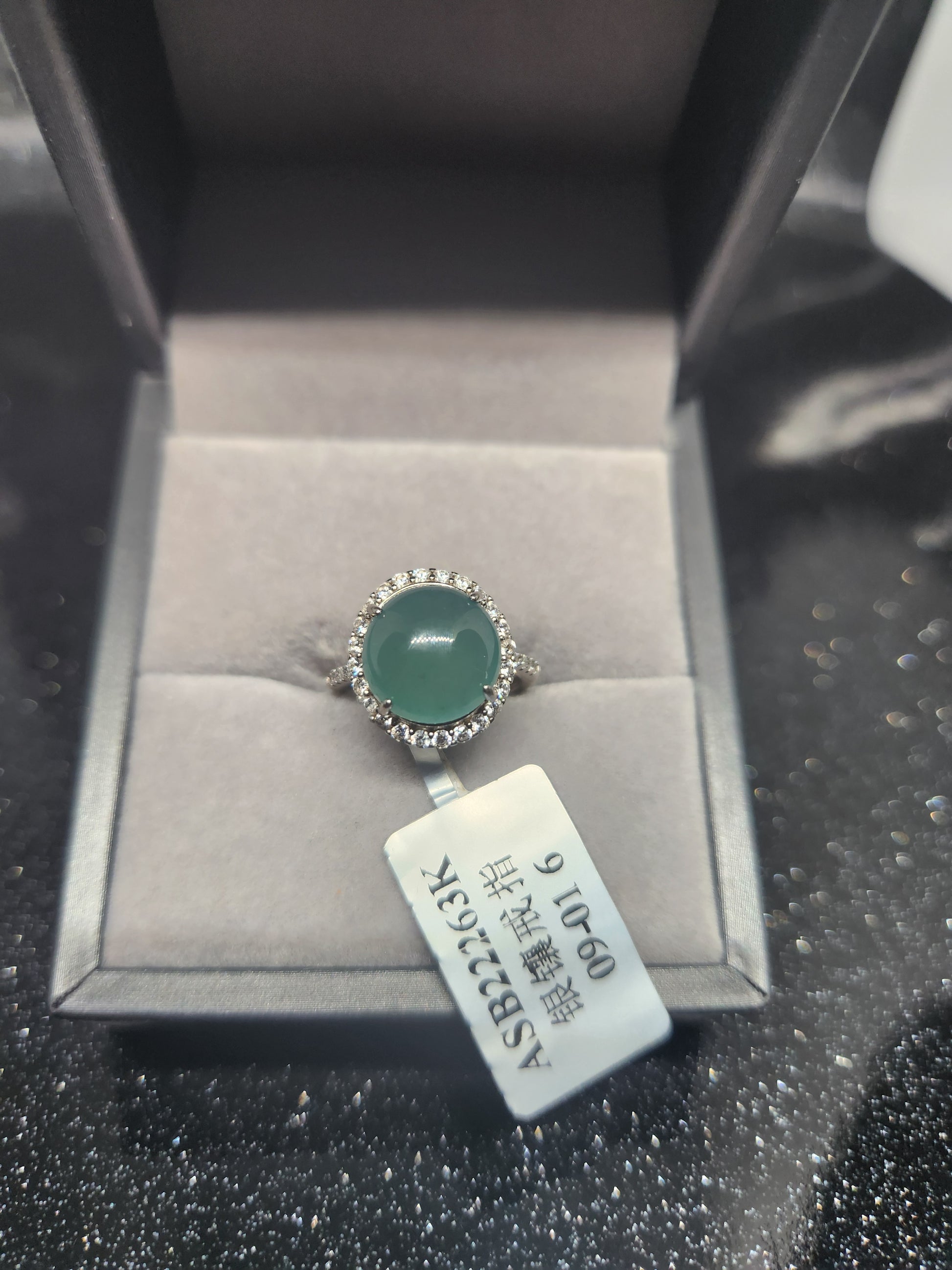 Green Jade Ring/Simple Jade Ring/Handmade Jade Jewelry/Sterling Silver/Natural Green Jade