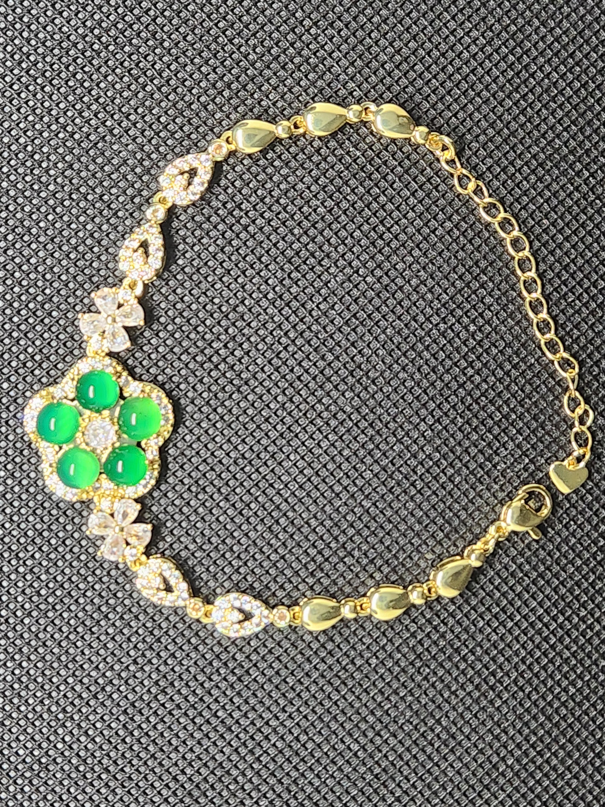 Gold Bracelet, green flower