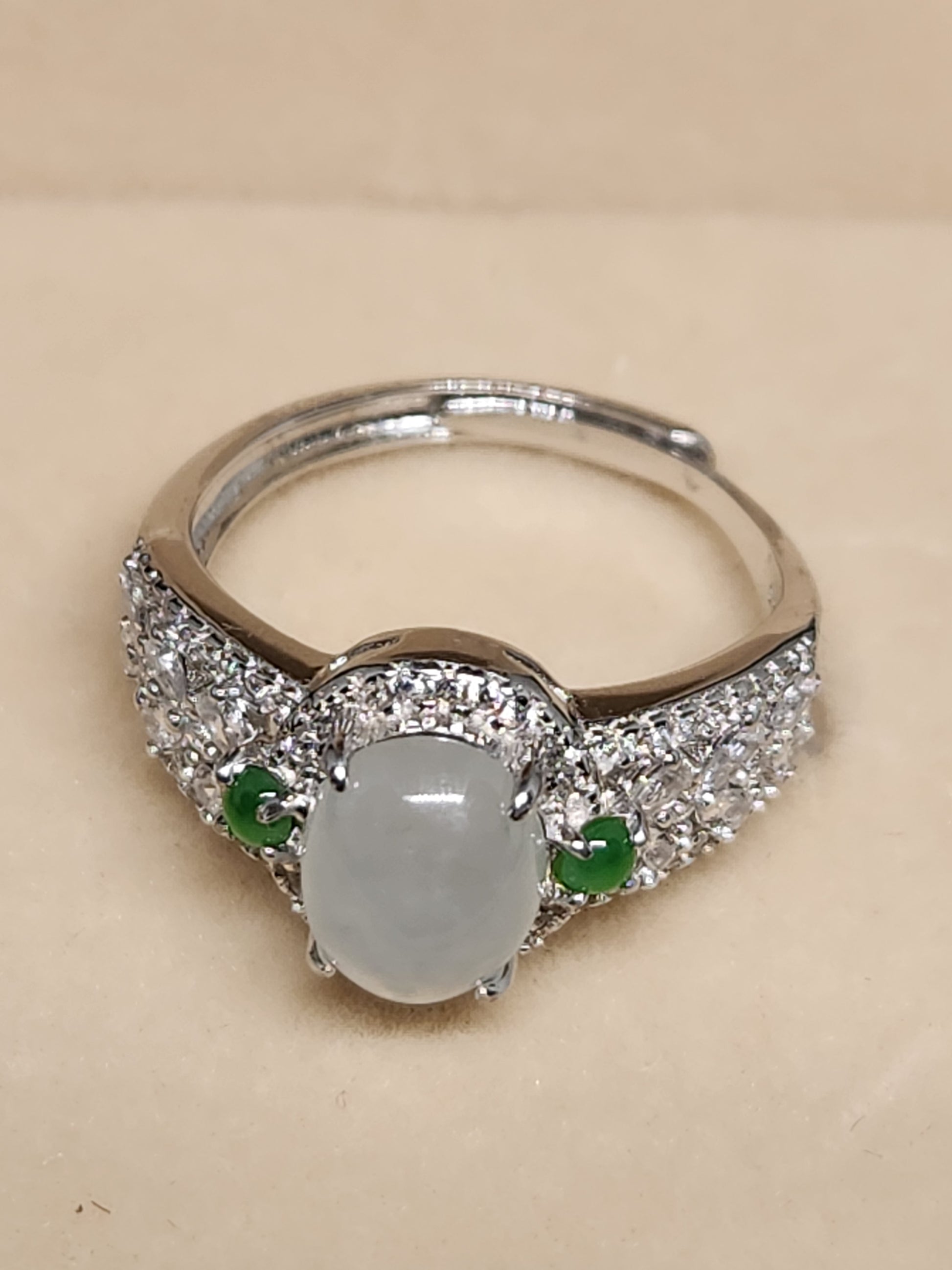 Designed to fit all sizes comfortably with its adjustable band, this ring combines the natural beauty of jade with the symbolic meanings of peace, balance, and prosperity. The icy jade hue adds a touch of serenity and sophistication to any look, making it an ideal accessory for both casual and formal occasions.
