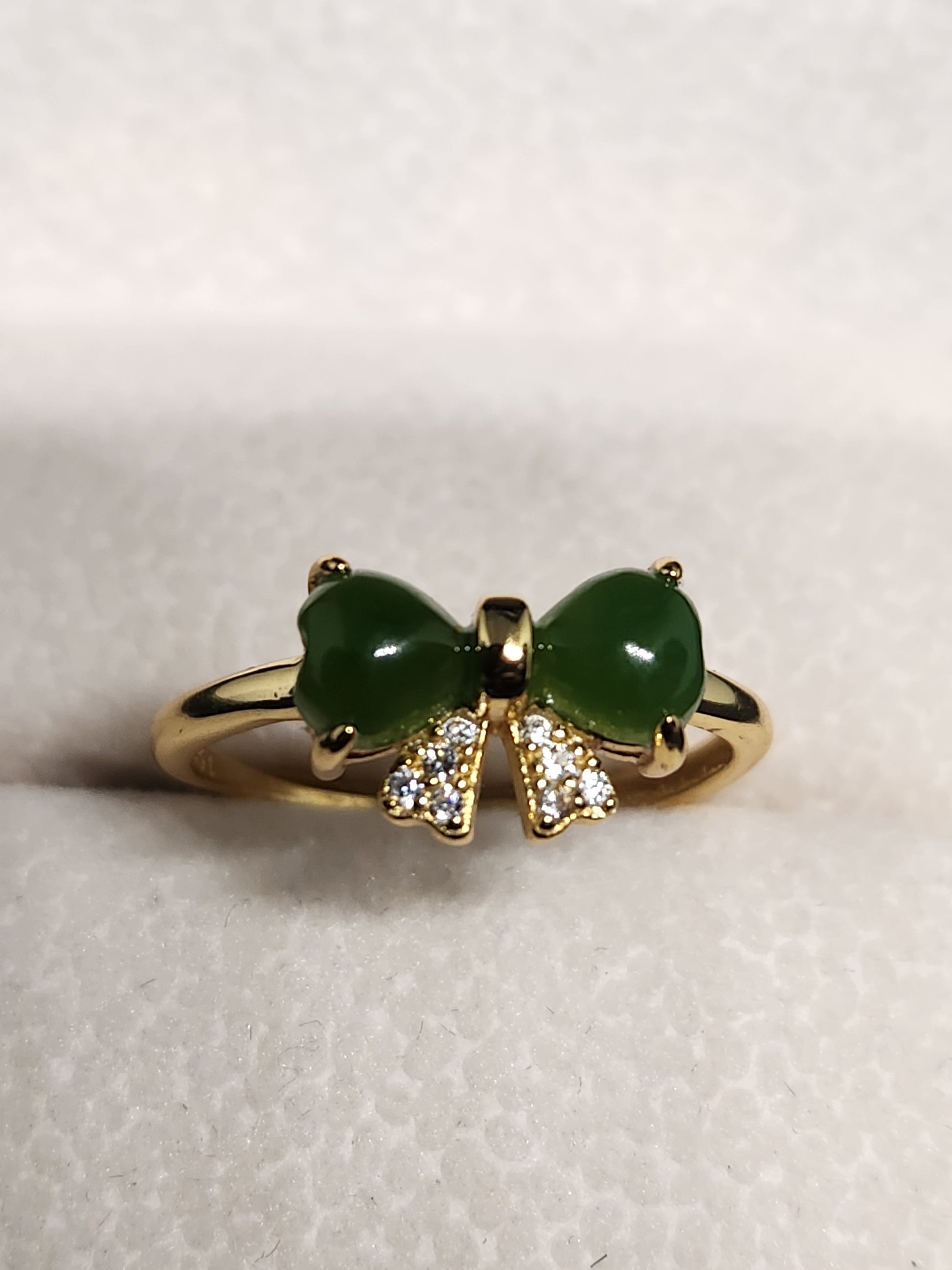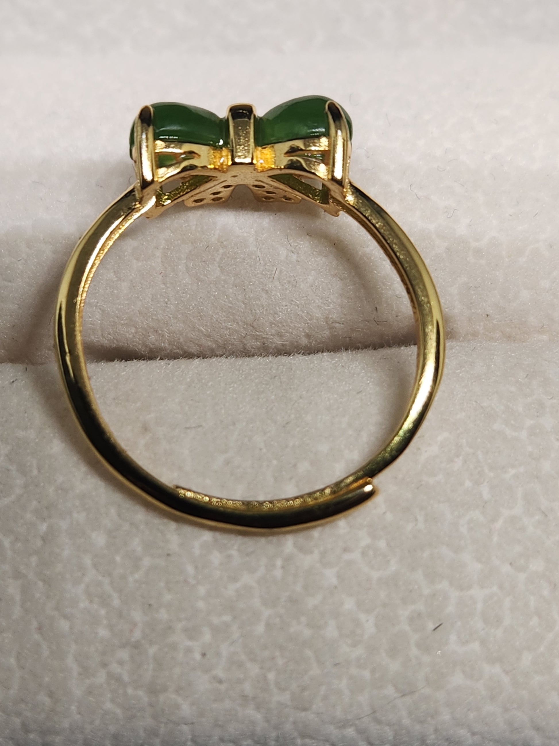 Green Jade Ring, 18k Gold Plated - One Size Fits All