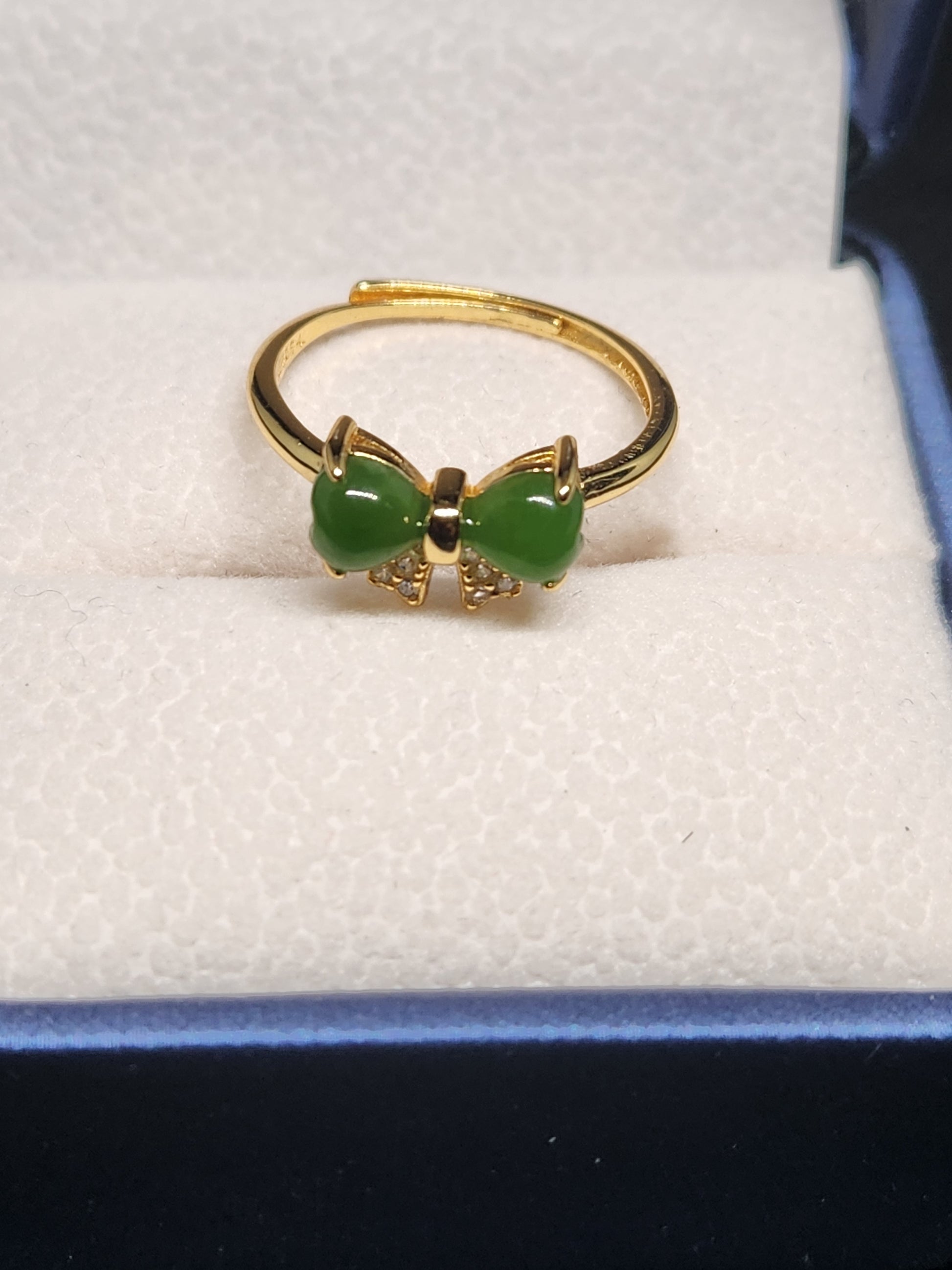 Elevate your jewelry collection with our Green Jade Ring, featuring genuine green jade delicately plated in luxurious 18k gold. This ring showcases a polished green jade stone known for its serene green hues and natural beauty.