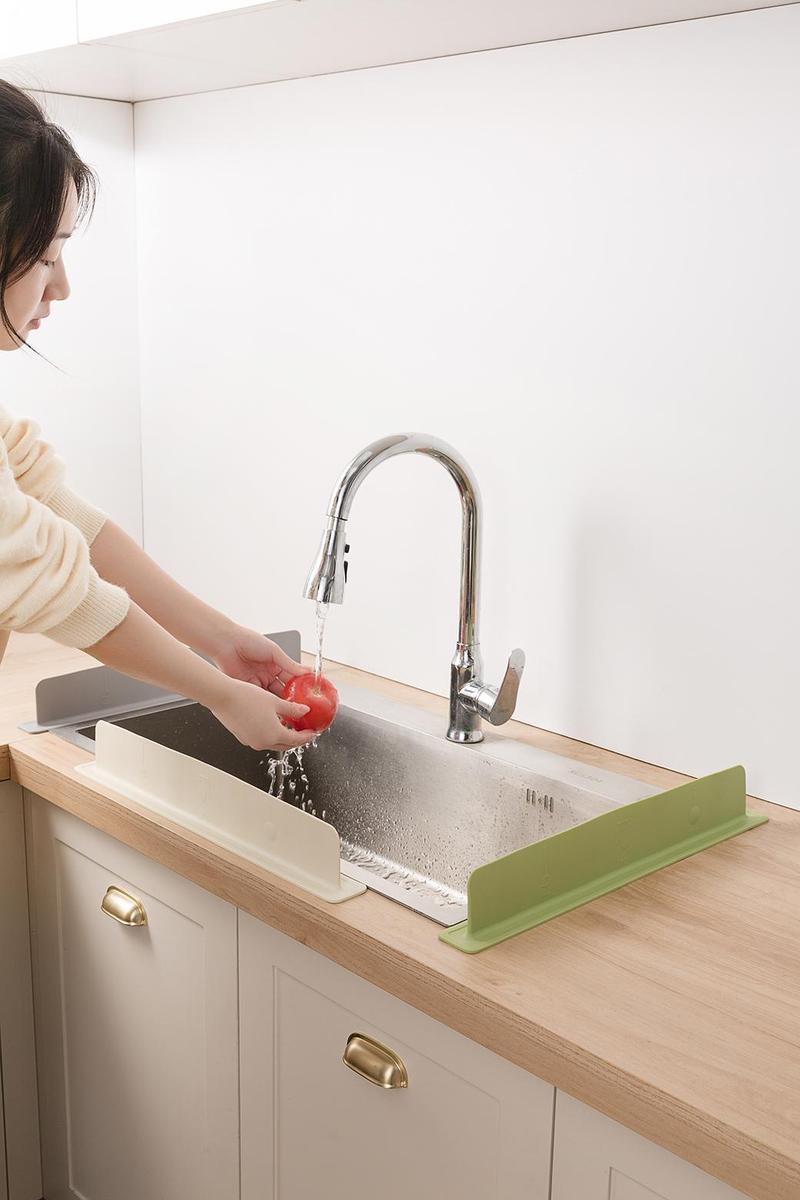 Silicone sink splash guard grips your countertop or sink edge securely—no adhesive required. Easily reposition or remove without leaving residue.